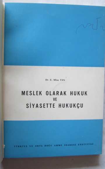Meslek Olarak Hukuk ve Siyasette Hukukçu, E. Mine Tan (Dr.) tarafından kaleme alınmıştır. Kitap 1972 yılında Türkiye ve Orta Doğu Amme İdaresi Enstitisü tarafından [Ankara] yayınlanmıştır. 199 sayfadır. Sayfa bilgisi 199 s. olarak belirtilmiştir. Meslek Olarak Hukuk ve Siyasette Hukukçu adlı eser Türkçe dilindedir.