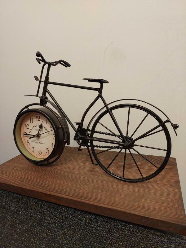 Dekoratif bisiklet modeline entegre edilmiş masa saati. Ev ve ofis dekorasyonuna nostaljik bir dokunuş katar.35 Cm eninde ve 25 Cm yüksekliğinde Metal bir üründür.Sorunsuz çalışmaktadır.Özenle paketlenecektir.Tüm Kol,Duvar ve Masa Saatlerim için,Diğer ilânlarımı incelemeyi unutmayınız.