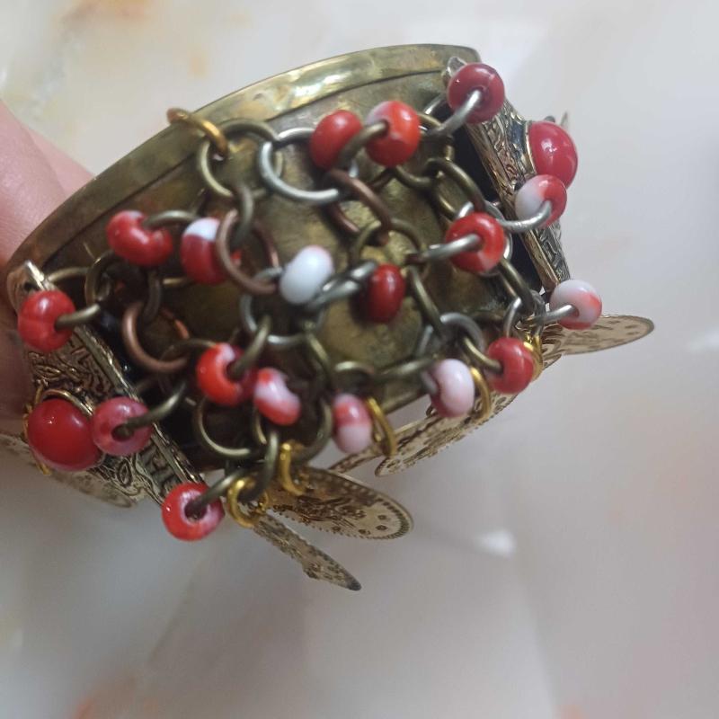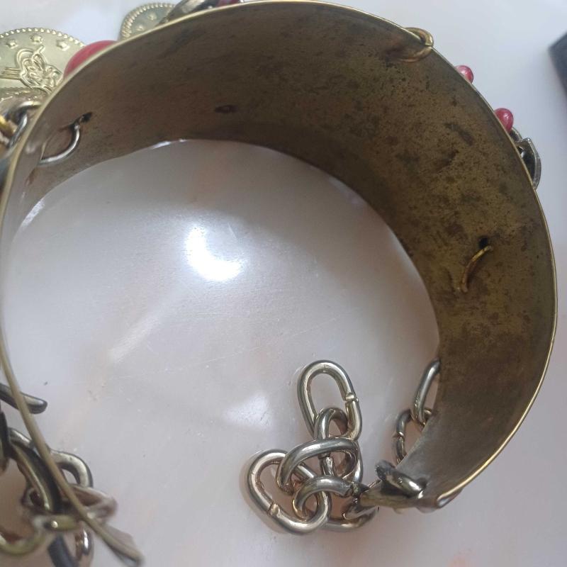 Vintage metal bileklik. Ic cap 17 cm Genislik 3 cm Kullanima dair izler mevcuttur.