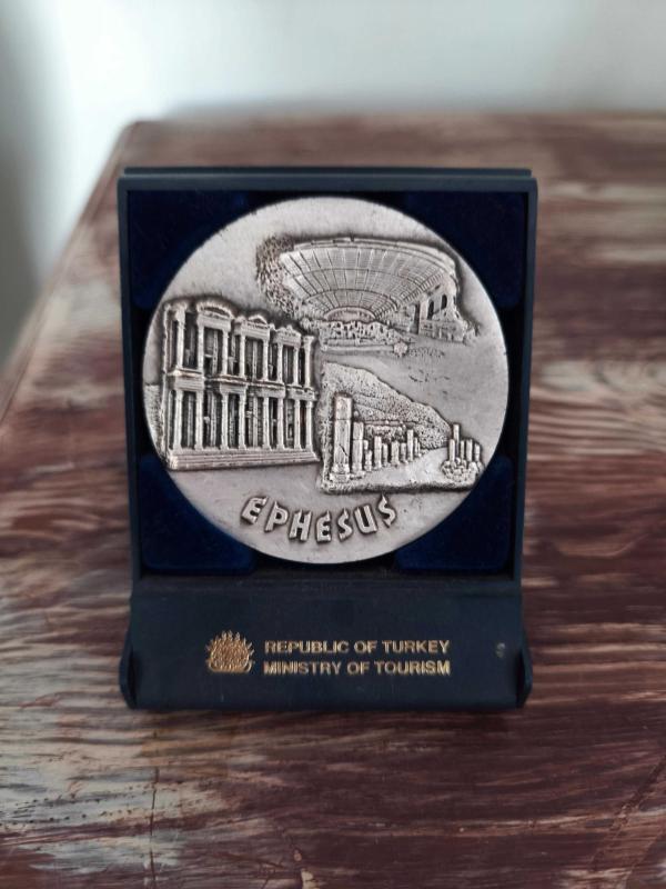 Ephesus, Efes ön ve arka modelli. Çift yönlü kutusunda sıfır bir paslanmaz madaloyon. Madalyon çapı 7 cm kutu ile beraber 8x10 cm