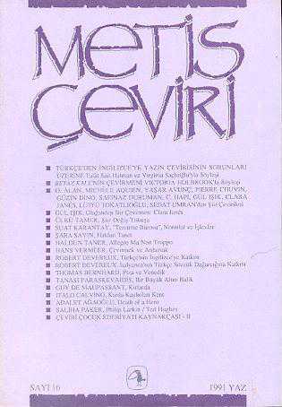 Metis Çeviri Araştırmaları Dergisi Sayı: 16 Yaz 1991