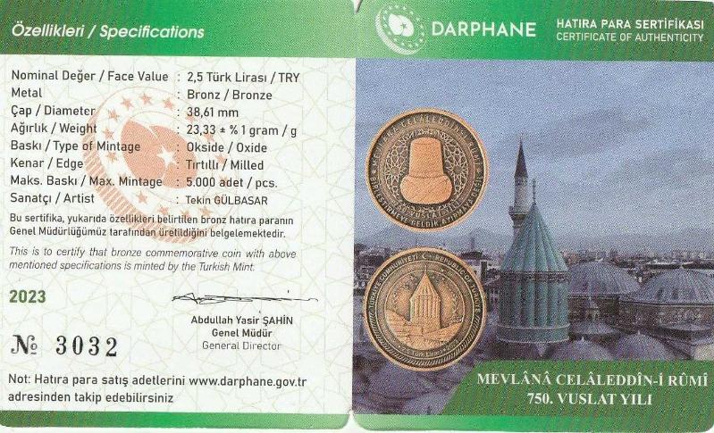 Mevlana Celaleddin-i Rumi 750.Vuslat Yılı Bronz Hatıra Parası, 10 ay önce satışa sunulmuştur.