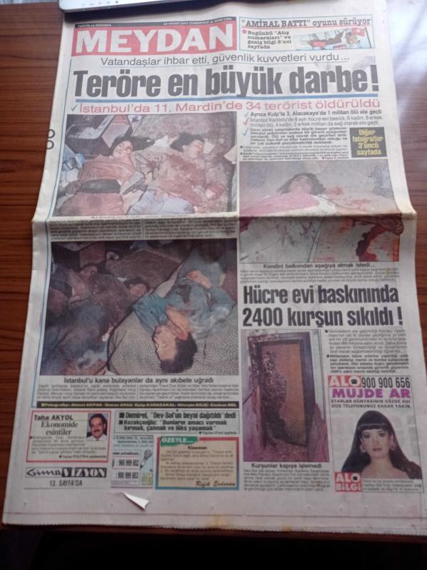 Meydan Gazetesi - 18 Nisan 1992 - Fenerbahçe Gerson'u Yine Kiralıyor - Bizim Stad Anarşistleri Gelsin Tribün Görsün - Harika Avcı'nın Dansöz Rolünde Oynadığı Film - Cindy Crawford - Claudia Schiffer - Richard Gere - Bağ Kur Genel Müdürü Kemal Kılıçdaroğlu - Süleyman Demirel Dev Sol'un Beyni Dağıtıldı - Vali Hayri Kozakçıoğlu - Necdet Menzir - Hücre Evi Baskınında 2400 Kurşun Sıkıldı adlı eser, Kitap > Süreli Yayınlar > Gazeteler kategorisinde İkinci El olarak satıştadır.