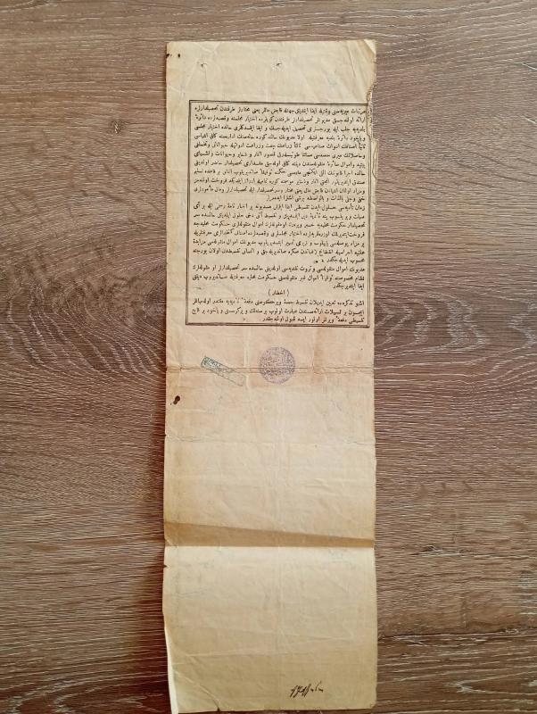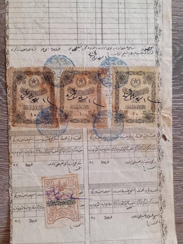 Efemera .Mezkukat Tezkeresi Evrakı. Ölçü 38cm x 12cm