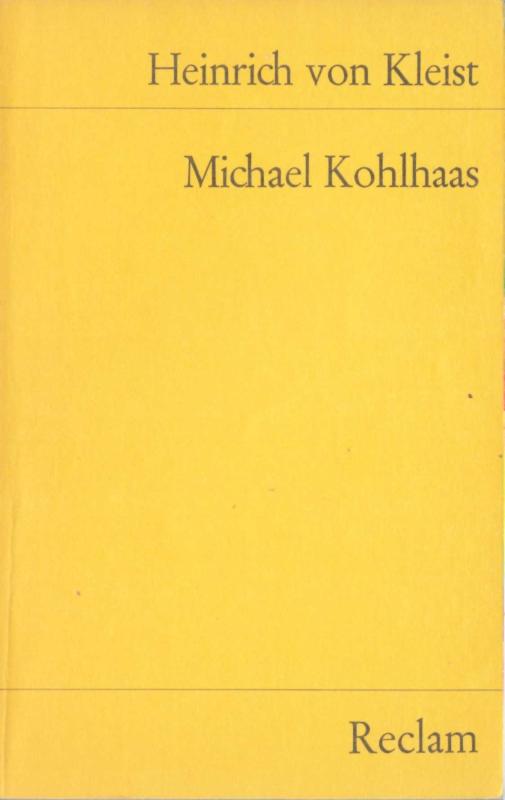 Michael Kohlhaas, Heinrich von Kleist tarafından kaleme alınmıştır. Kitap 1983 yılında RECLAM tarafından yayınlanmıştır. 128 sayfadır. Michael Kohlhaas adlı eser Almanca dilindedir.