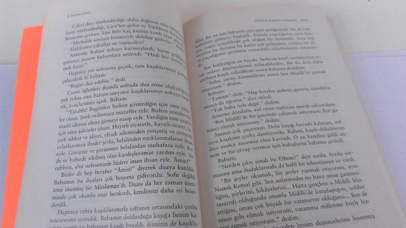 “Göç ediyoruz.” dedi kaptan; şivesinden Rum olduğu anlaşılıyordu. Sigarasından bir nefes aldıktan sonra bu sefer o sordu: “Siz kimlerdensiniz, nereye gidiyorsunuz?” “Biz Midilli’nin Ağra Köyü’ndeniz, biz de göç ediyoruz, Anadolu’ya.” dedi babam. “Kader.” dedi kaptan. Kendi teknesinin içine doğru, soğuktan birbirlerine sokulmuş, bitkin ve üzgün oldukları belli olan kadın ve çocuklara acıyan gözlerle baktı. Derin bir iç çekip ekledi: “Biz Ayvalık’tan Midilli’ye, siz Midilli’den Ayvalık’a...” Sigarasından tüm ciğerlerini dolduracak kadar güçlü bir nefes daha çekti ve konuşmasına devam etti: “Duymadınız daha galiba. Smyrni dün sabah düştü.”