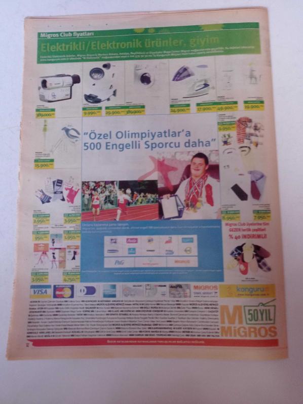 Migroskop Gazetesi -22 Ocak 5 Şubat 2004 - Sayı 335 - Kurban Bayramı - Özel Olimpiyatlar'a 500 Engelli Sporcu Daha - Coca Cola - Calgon - Colgate - Gillette - Ülker - Nestle - Doluca Şarap adlı eser, Kitap > Süreli Yayınlar > Gazeteler kategorisinde İkinci El olarak satıştadır.
