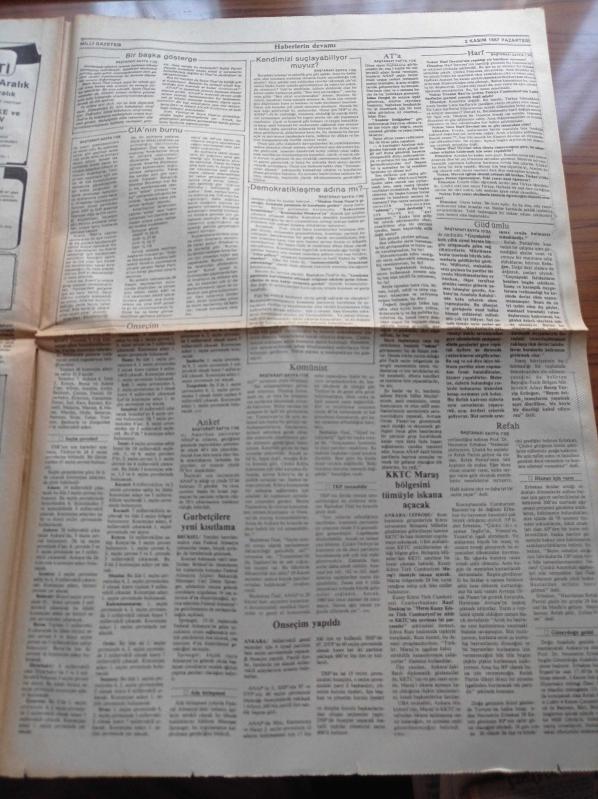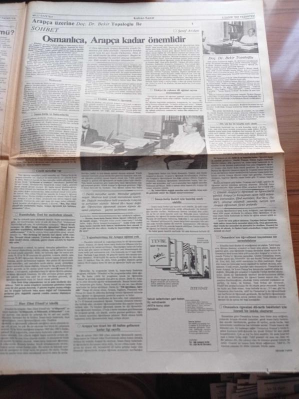 Milli Gazete - 2 Kasım 1987 - Recep Tayyip Erdoğan - TİM SE Dar ve Orta Gelirli Ev Sahibi Olamaz- Abdurrahman Dilipak - Emine Şenlikoğlu - Osmanlıca Arapça Kadar Önemlidir - Behice Boran Ve Başörtülü Vatandaş - Bülent Ecevit Her Şey İşçi Aleyhine - Necmettin Erbakan Turgut Özal'ı TV'de Tartışmaya Çağırdı - Refah Partisi'nden Ödleri Kopuyor - Başbakan Turgut Özal Komünistlerle Dinciler Aynı - Esad Coşan Tercümanı Yalanladı - Recai Kutan - Lütfi Doğan - Ziyad Ebuzziya Harf Devrimi Hata İdi adlı eser Türkçe dilindedir.