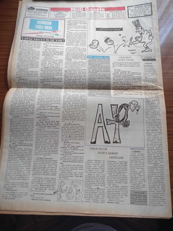 Milli Gazete - 30 Nisan 1989 - Şanlıurfa Belediye Başkanı İbrahim Halil Çelik Serbest - Refah Partisi - Necmettin Erbakan'dan Kurultayda Demokrasi Dersi - Hak İş Sendikası - Öz Gıda İş Sendikası - Şekerci Hacı Bekir'de Grev - İsmet Özel Bugün Kitaplarını İmzalıyor - Hasan Aksay - Turgut Özal Kendi Kazdığı Kuyuya Düşecek - Seçim Kanunu Değiştirilmelidir adlı eser, Kitap > Süreli Yayınlar > Gazeteler kategorisinde İkinci El olarak satıştadır.