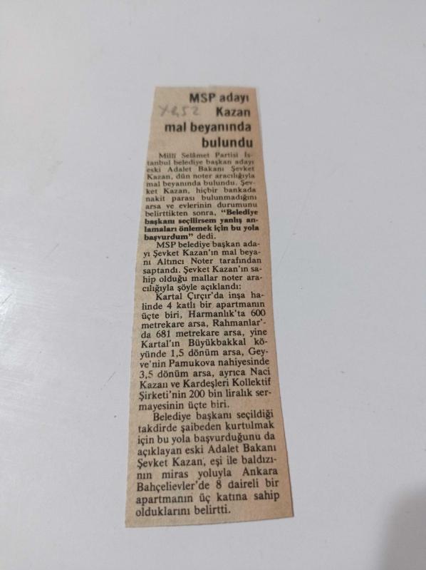 Milli Selamet Partisi İstanbul Belediye Başkan Adayı Şevket Kazan - Adalet Bakanı - Noter - Mal Beyanı - Bahçelievler, en son 3 yıl önce güncellenmiştir.
