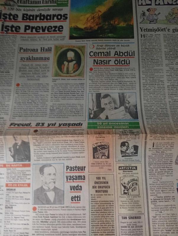 Milliye GAZETESİ-22 eylül 1985-Brooke Shields - Ceylan Orhun - Ahmet Soner - Özlem Tezcan - Nursen Kitapçı - Nermin Bezmen - Aişe Tezcan - Nazlı İnönü - Hayri İnönü - Sema Çağlan - Seçkin Çağlan - Ahmet Bezmen - Turgut Özal - Torun Dede - Alev Bezmen - Halil Narin - Ayten Narin - Güzin Öngör - Aysel Acar - Nilgün Aydın - Şule Bezmen - Leyla Kadirbeyoğlu - Engin Cezzar - Gülriz Sururi - Gülşah Soydan - Zao Ziyang - Deng Şiaoping - Hua Gue Feng - Cemal Abdül Nasır - İlhan Soysal - Louis Pasteur - Sigmund Freud - Padişah I. Ahmet - Genç kızlara öğütler - Sağlıklı rejimin 10 temel ilkesi - 20. yüzyılın güzellik ilahesi Brooke Shields yazdı - Merhaba… - Genç İnönü’ler için öğrenmek en güzel şey - Çiftehavuzlar’da mücevher yarışı - Konuklarını sarayda ağırladı - Mutluluk dilekleri arasında - Eller mesaj veriyor - Beyti - Dışarıdan gelenleri evinde ağırlıyor - 25. evlilik yıldönümü onuruna - Gözümüz üzerinizde - Dünyadan haberiniz var mı? - İşte Barbaros İşte Preveze - Cemal Abdül Nasır öldü adlı eser Türkçe dilindedir.