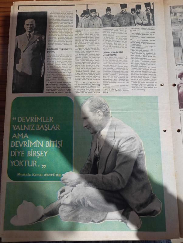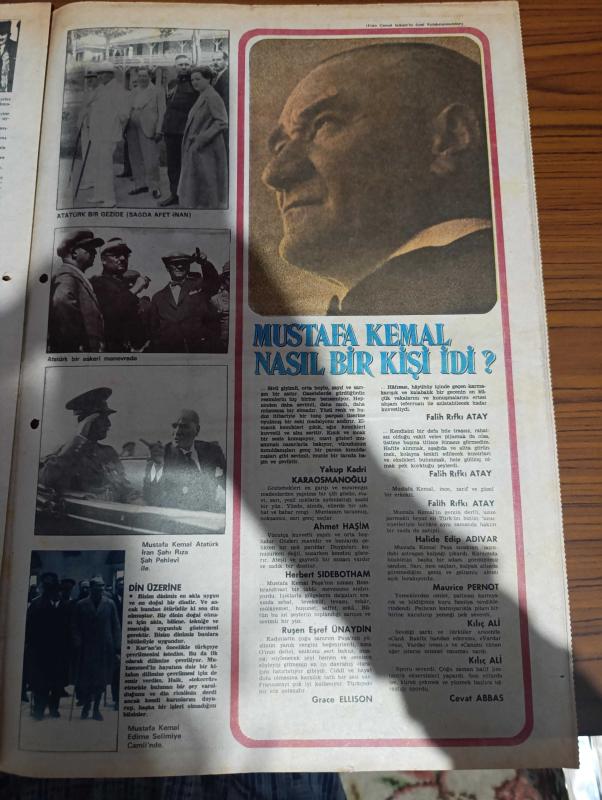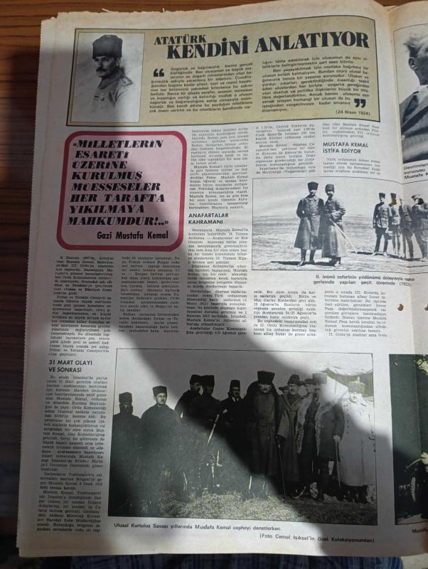 Milliyet 10 Kasım Gazetesi - Turkish Newspaper - 50'li yıllar - Atatürk dedim iptida önümü ilikledim yazan İlhan Demiraslan - Mustafa Kemal'in sözleri - Mustafa Kemal eğitiliyor - Atatürk kapak resmi Firuz Aşkın - Mustafa Kemal halep'te Yıldırım orduları Grubu komutanı iken yaverleri ile birlikte fotoğraf - albay Mustafa Kemal Çanakkale Savaşı'nda ve Anafartalar zaferinden sonra Fotoğrafı - Mustafa Kemal müşir üniforması ile fotoğraf - Mustafa Kemal trablusgarp'ta Enver Paşa ile birlikte fotoğraf - İstiklal savaşında Atatürk yazan Mesut Tarcan - Atatürk kendini anlatıyor - 31 Mart olayı ve sonrası - II. İnönü zaferinin yıldönümü dolayısıyla cephe gerisinde yapılan Geçit töreninde Fotoğrafı - Mustafa Kemal Ankara'da otomobille yola çıkarken Çankaya köşküörü önünde fotoğraf - Atatürk bir gezide Afet İnan'la fotoğraf - Mustafa Kemal Atatürk İran Şahı Rıza Şah pehlevi ile fotoğraf - Mustafa Kemal'in din üzerine görüşü - Mustafa Kemal nasıl bir kişiydi - Ahmet Haşim - Halide Edip Adıvar, Ali Naci Karacan tarafından kaleme alınmıştır. Milliyet 10 Kasım Gazetesi - Turkish Newspaper - 50'li yıllar - Atatürk dedim iptida önümü ilikledim yazan İlhan Demiraslan - Mustafa Kemal'in sözleri - Mustafa Kemal eğitiliyor - Atatürk kapak resmi Firuz Aşkın - Mustafa Kemal halep'te Yıldırım orduları Grubu komutanı iken yaverleri ile birlikte fotoğraf - albay Mustafa Kemal Çanakkale Savaşı'nda ve Anafartalar zaferinden sonra Fotoğrafı - Mustafa Kemal müşir üniforması ile fotoğraf - Mustafa Kemal trablusgarp'ta Enver Paşa ile birlikte fotoğraf - İstiklal savaşında Atatürk yazan Mesut Tarcan - Atatürk kendini anlatıyor - 31 Mart olayı ve sonrası - II. İnönü zaferinin yıldönümü dolayısıyla cephe gerisinde yapılan Geçit töreninde Fotoğrafı - Mustafa Kemal Ankara'da otomobille yola çıkarken Çankaya köşküörü önünde fotoğraf - Atatürk bir gezide Afet İnan'la fotoğraf - Mustafa Kemal Atatürk İran Şahı Rıza Şah pehlevi ile fotoğraf - Mustafa Kemal'in din üzerine görüşü - Mustafa Kemal nasıl bir kişiydi - Ahmet Haşim - Halide Edip Adıvar adlı eser Türkçe dilindedir.