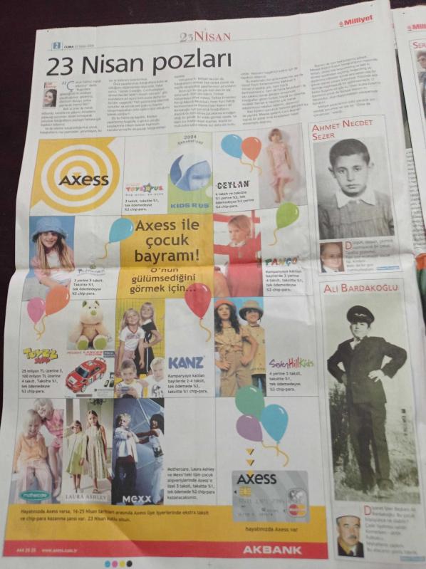 Milliyet 23 Nisan Gazetesi- 23 Nisan 2004 - Ajda Pekkan -Güher Ve Süher Pekinel- Hülya Koçyiğit -Onlar Da Çocuktu - Ünlülerin Çocukluk Fotoğrafları - Bülent Ecevit - Patrik Bartholomeos - Abdullah Gül - Şener Şen - Atilla İlhan - Sergen Yalçın - Sakıp Sabancı adlı eser Türkçe dilindedir.