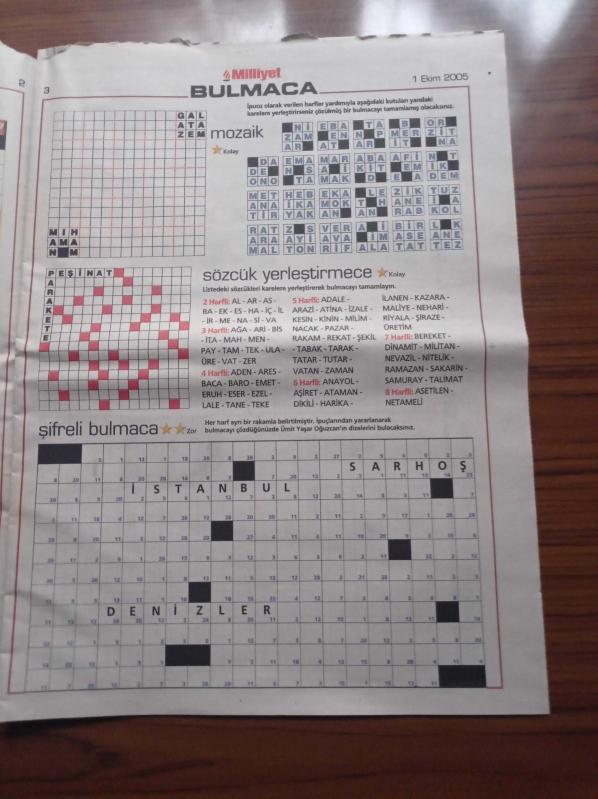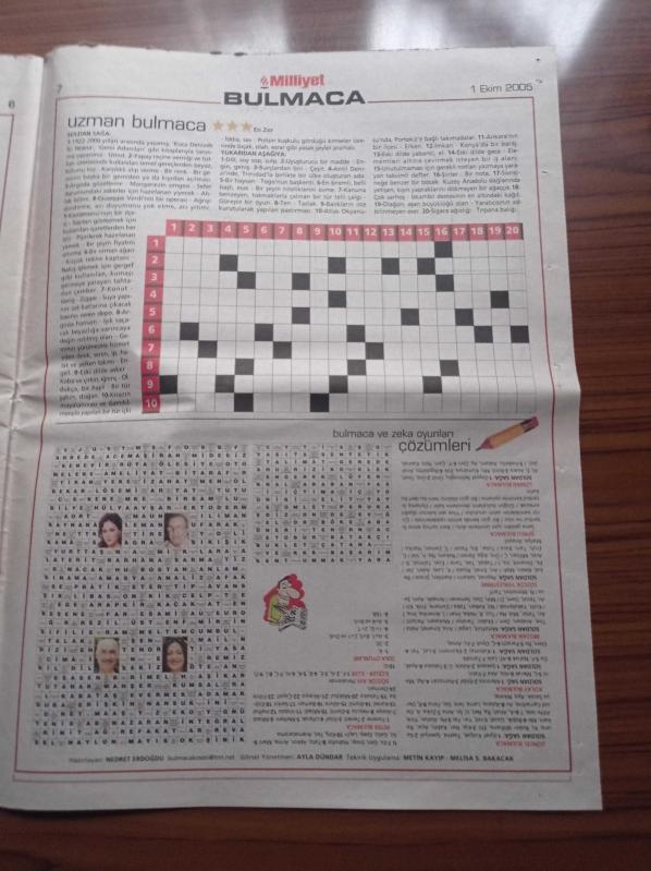 Milliyet Bulmaca Gazetesi - 1 Ekim 2005 - Hülya Avşar Fotoğrafı - Atıf Yılmaz Fotoğrafı - Şener Şen Fotoğrafı - Meltem Cumbul Fotoğrafı - Eşref Kolçak Fotoğrafı - Uzman Bulmaca - Şifreli Bulmaca - Mozaik Bulmaca - Kolay Bulmaca - Zeka Oyunları adlı eser Türkçe dilindedir.