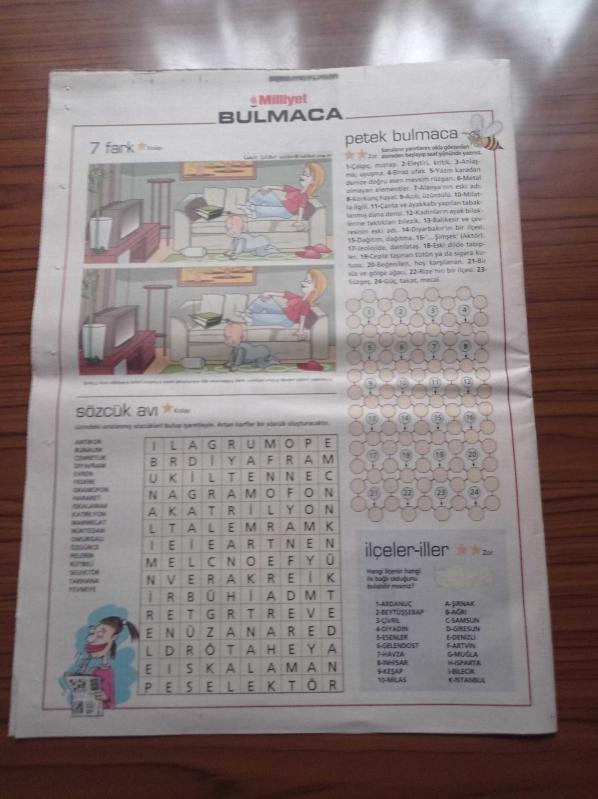 Sayfa Boyutu: 28*38cm Sayfa Sayısı: 8 Milliyet Bulmaca Gazetesi Yıpranma, sararmalar, kupon kesiği ve yırtılmalar zamana bağlı olarak görülebilir