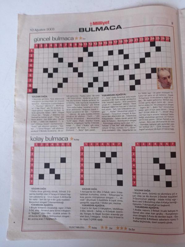 Milliyet Bulmaca Gazetesi - 10 Ağustos 2003 - Şifreli Bulmaca - Sözcük Yerleştirmece -Brad Pitt Fotoğrafı - Nicole Kidman - Kim Bassinger - Alec Baldwin- Petek Bulmaca - Zeka Oyunları - Mozaik Bulmaca adlı eser, Kitap > Süreli Yayınlar > Gazeteler kategorisinde İkinci El olarak satıştadır.