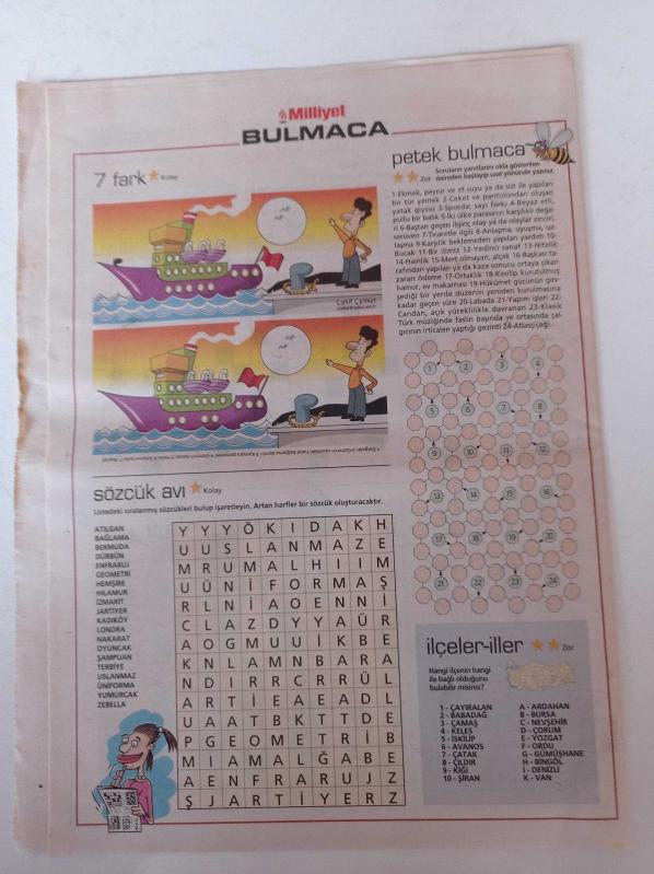 Sayfa Boyutu: 28*38cm Sayfa Sayısı:8 Milliyet Bulmaca Gazetesi Yıpranma, sararmalar, kupon kesiği ve yırtılmalar zamana bağlı olarak görülebilir