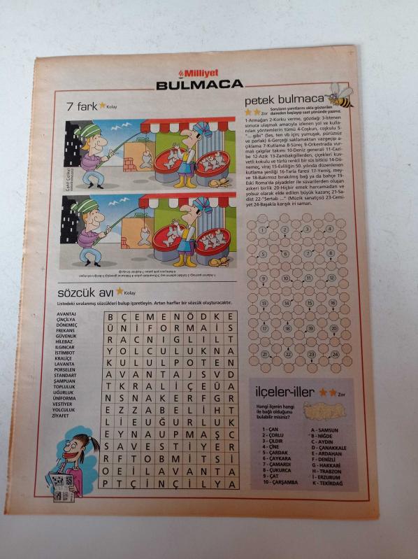 Sayfa Boyutu: 28*38cm Sayfa Sayısı:8 Milliyet Bulmaca Gazetesi Yıpranma, sararmalar, kupon kesiği ve yırtılmalar zamana bağlı olarak görülebilir