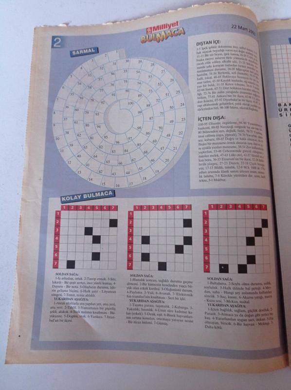 Sayfa Boyutu: 28*38cm Sayfa Sayısı:8 Milliyet Bulmaca Gazetesi Yıpranma, sararmalar, kupon kesiği ve yırtılmalar zamana bağlı olarak görülebilir