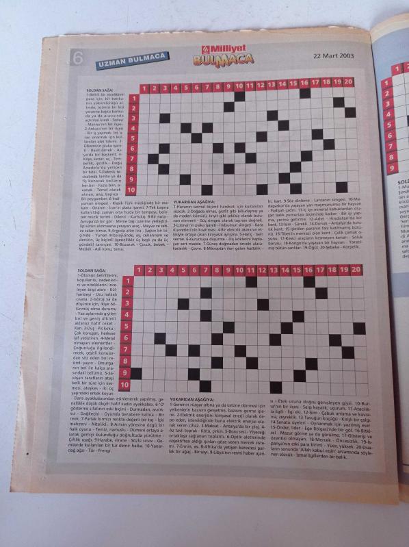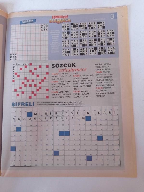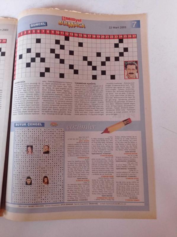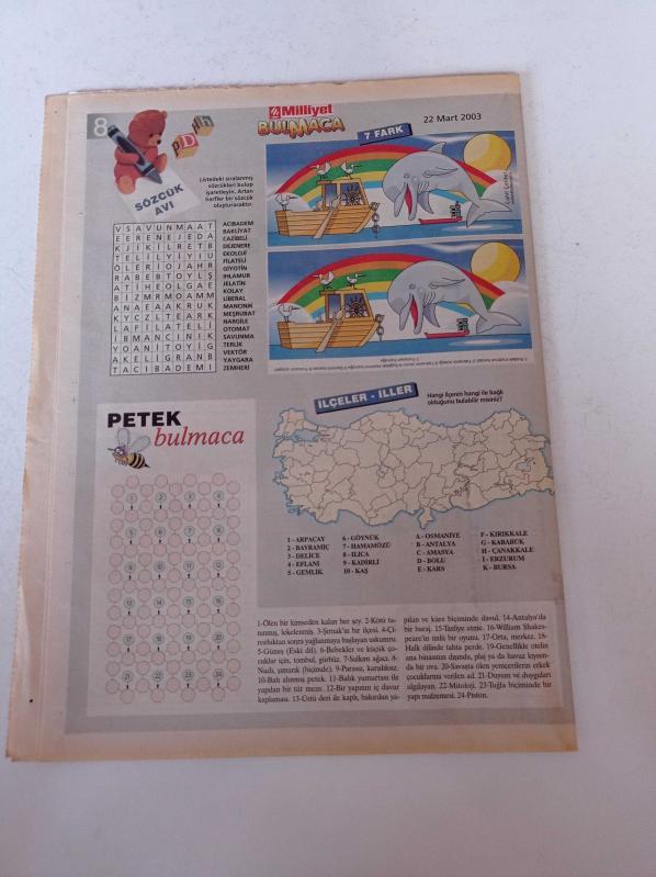 Milliyet Bulmaca Gazetesi - 22 Mart 2003 - Ozan Güven Ve Şebnem Dönmez Fotoğrafı - Doğa Rutkay - Ali Sunal - Memet Ali Alabora - Seren Fosforoğlu - Yavuz Bingöl - 7 Fark adlı eser Türkçe dilindedir.