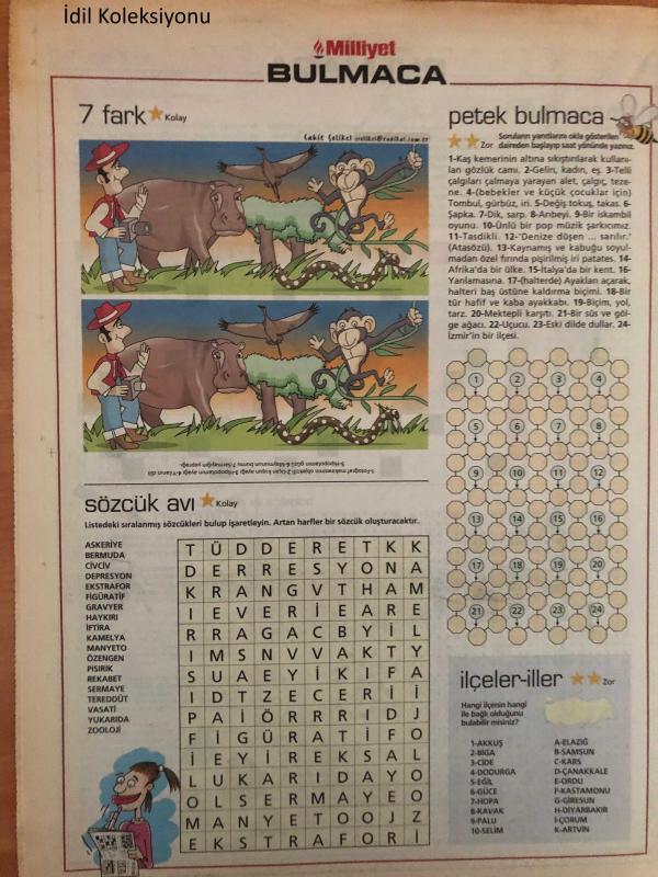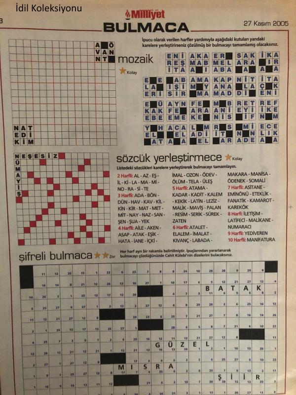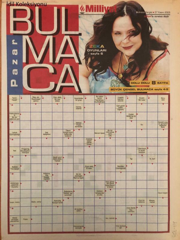 Milliyet Bulmaca Gazetesi , 27 Kasım 2005 , Şebnem Ferah , Büyük Çengel Bulmaca , Zeka Oyunları , Sözcük Yerleştirmece , Mozaik , Şifreli Bulmaca , Uzman Bulmaca , Güncel Bulmaca , Kolay Bulmaca , Sözcük Avı , Petek Bulmaca adlı eser Türkçe dilindedir.