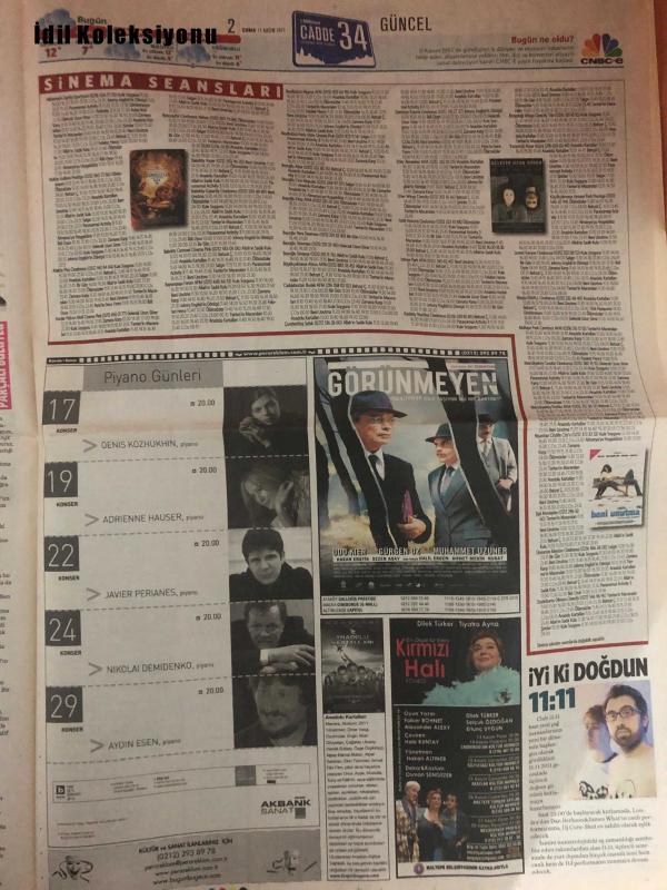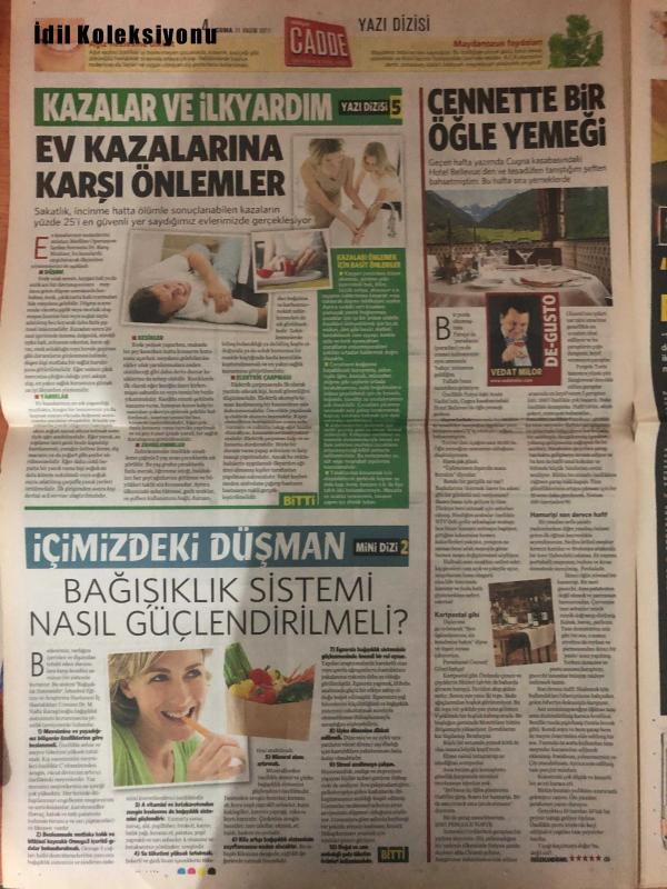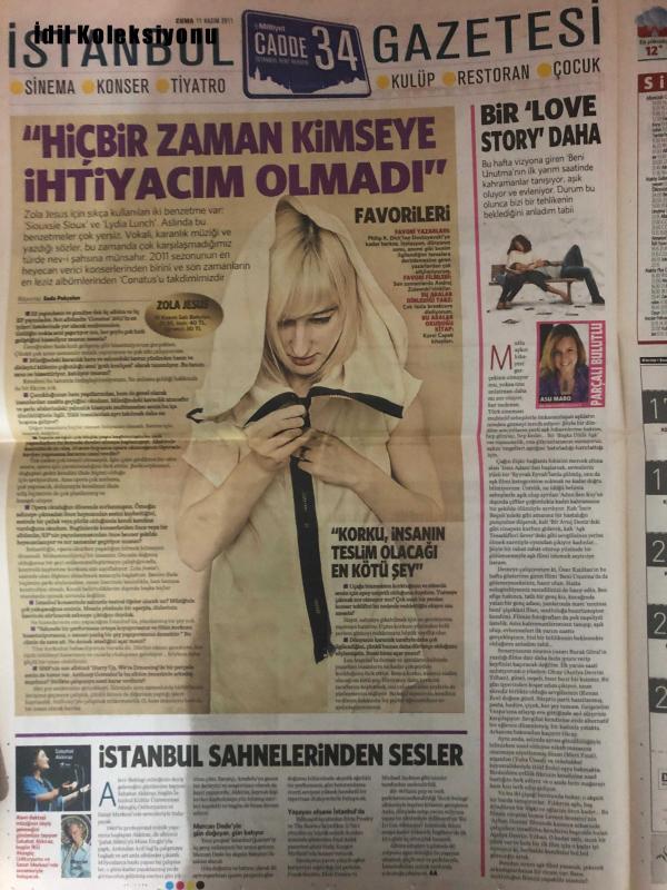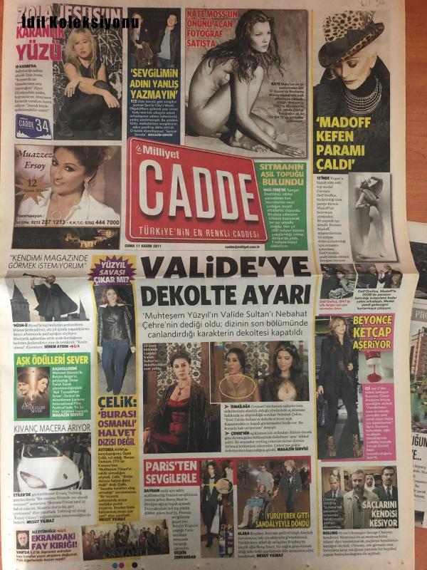 Milliyet Cadde Gazetesi , 11 Kasım 2011 , Zola Jesus, Muazzez Ersoy, Ece Uslu, Kate Moss, Carmen Dell'Orefice, Beyoncé, George Clooney, Alara Koçibey, Kıvanç Tatlıtuğ , Nebahat Çehre , Zola Jesus'un Konseri ve Karanlık Yüzü, Muazzez Ersoy'un Konser Tarihi, Ece Uslu ve Sevgilisi Serkan Senalp, Kate Moss'un Fotoğrafının Satışı, Sıtma Parazitine Karşı İlerleme, Nebahat Çehre'nin Valide Sultan Rolünde, Hüsnü Şenlendirici'nin Albümü ve Yaşamı, "Aşk Tesadüfleri Sever" Film Ödülü, Carmen Dell'Orefice'nin Bernie Madoff Skandalı, Beyoncé'nin Ketchup Aşkı, George Clooney'nin Saç Kesimi ve Güvenlik Önlemleri, Alara Koçibey'in Tatilden Dönüşü, Mickey Rourke, Alan Parker, Francis Ford Coppola, Darren Aronofsky, Frank Miller, Charles Bukowski, Henry Cavill, Luke Evans, John Hurt, Özcan Alper, Gaye Gürsel, Durukan Ordu, Sarkis Seropyan, Özer Kızıltan, Mert Fırat, Açelya Devrim Yılmaz, Tuba Ünsal, Kenan Ece, Anna Faris, Chris Evans, Martin Freeman, Zachary Quinto, Mickey Rourke'un İkinci Baharı adlı eser, Kitap > Süreli Yayınlar > Gazeteler kategorisinde İkinci El olarak satıştadır.