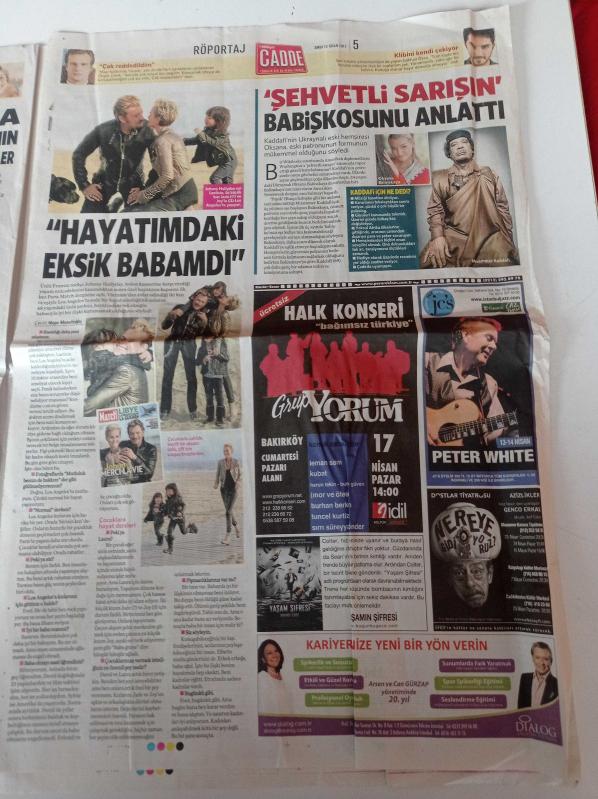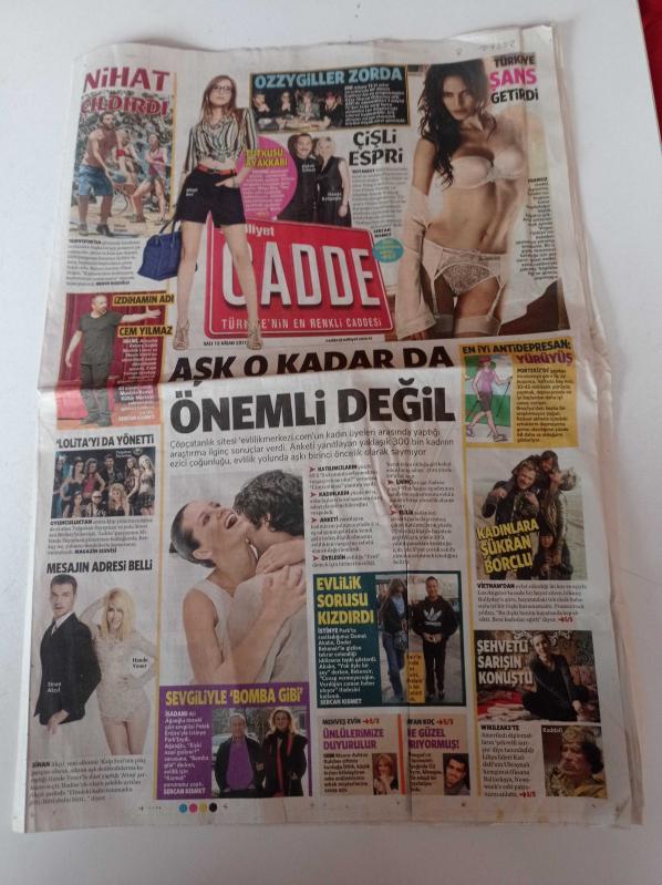 Milliyet Cadde Gazetesi - 12 Nisan 2011 - 12 Nisan 2011 - Çöpçatanlık Sitesi Evlilikmerkezi.com- Tolgahan Sayışman - Sinan Akçıl - Hande Yener - Nihat Doğan - Cem Yılmaz - Wıkıleaks - Muammer Kaddafi- Fransız Model Aymeline Valade adlı eser Türkçe dilindedir.
