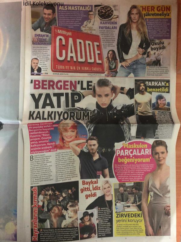 Milliyet Cadde Gazetesi , 30 Eylül 2018 , Kenan Doğulu , Melek Baykal , Burcu Biricik , Kerem Bürsin , Bergen , Burak Özçivit , Serenay Sarıkaya , Bar Refaeli , Arka Sokaklar , Nurseli İdiz adlı eser Türkçe dilindedir.