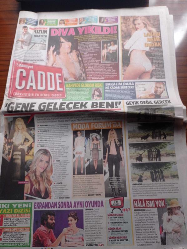 Milliyet Cadde Gazetesi - 7 Ekim 2012 - Lakabı Meme Dudak - Bülent Ersoy Yıkıldı - Kenan İmirzalıoğlu'nun Uzun Hikayesi - Hayvan Hakları Örgütü PETA'nın Aktif Üyesi - Lady Gaga Nasıl Doğdu adlı eser Türkçe dilindedir.
