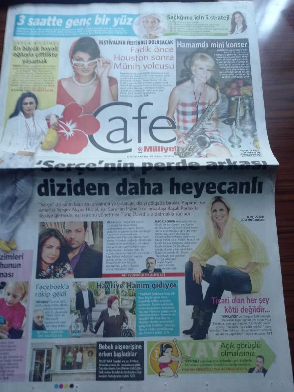 Milliyet Cafe Gazetesi - 19 Mart 2008 - Fadik Sevin Atasoy Önce Houston Sonra Münih Yolcusu - Hamamda Mini Konser - Leyla Bilginel En Büyük Hayali Ogluyla Çiftlikte Yaşamak - Yaprak Dökümü - Facebook'a Rakip Geldi - Ayça Tekindor Ticari Olan Her Şey Kötü Değildir adlı eser Türkçe dilindedir.