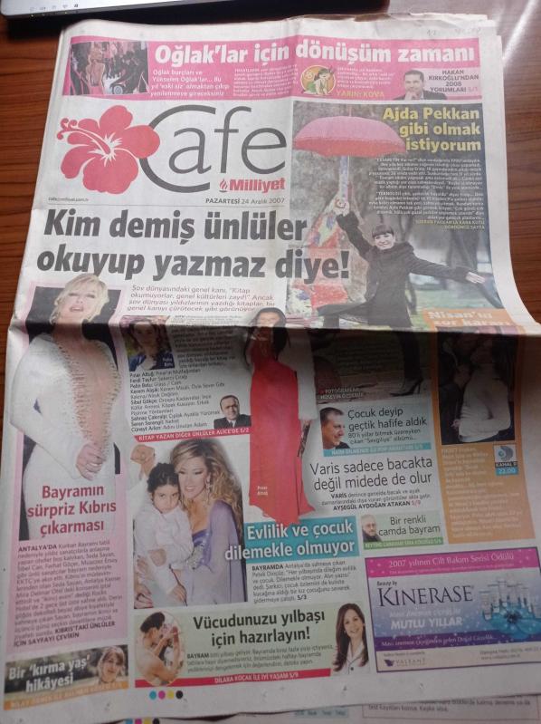 Milliyet Cafe Gazetesi - 24 Aralık 2007 - Bayramın Sürpriz Kıbrıs Çıkarması - Emel Sayın Fotoğrafı - Gülay Eralp Ajda Pekkan Gibi Olmak İstiyorum - Fikret Kuşkan - Nejat İşler - Kim Demiş Ünlüler Okuyup Yazmaz Diye - Pelin Batu - Oğlaklar İçin Dönüşüm Zamanı - Pınar Altuğ - Petek Dinçöz - Vücudunuzu Yılbaşı İçin Hazırlayın adlı eser Türkçe dilindedir.