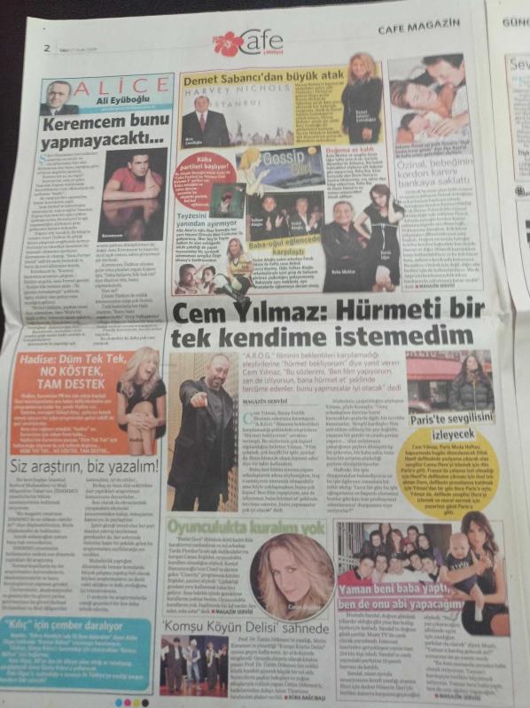 Milliyet Cafe Gazetesi- 27 Ocak 2009 - Tamer Karadağlı Kızım Benim Gibi Birini Beğenirse Yandım - Vildan Atasever - Keremcem - Yasemin Ergene - Erkeklerin Korkulu Rüyası Prostat - Issız Adam'ı Kim Keşfetti - Mustafa Sandal Dedesiyle Film Çekecek adlı eser Türkçe dilindedir.