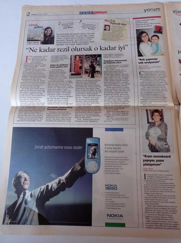 Sayfa Boyutu: 38*56cm Sayfa Sayısı:8 Milliyet Cuma Gazetesi Yıpranma, sararmalar, kupon kesiği ve yırtılmalar zamana bağlı olarak görülebilir