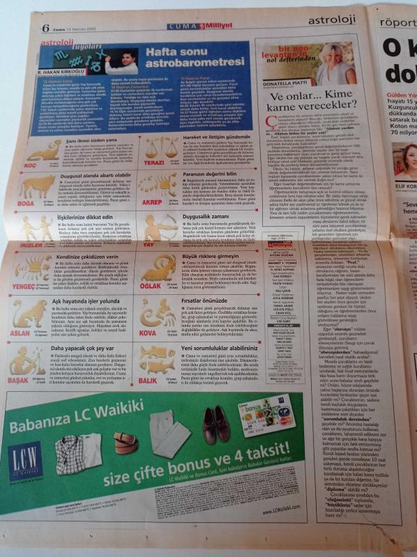 Sayfa Boyutu: 38 *56cm Sayfa Sayısı:8 Milliyet Cuma Gazetesi Yıpranma, sararmalar, kupon kesiği ve yırtılmalar zamana bağlı olarak görülebilir