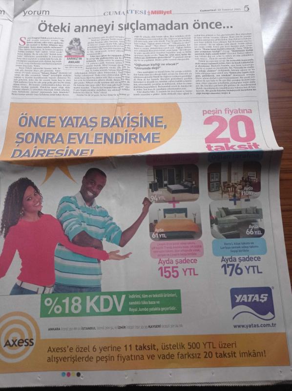 Milliyet Cumartesi - 30 Temmuz 2005 - Şarkılarım Dj'lere Emanet Etti - Ünlü Kemancı Zukerman Geliyor - Yeraltında Bir Sergi - İstanbul Modern adlı eser Türkçe dilindedir.
