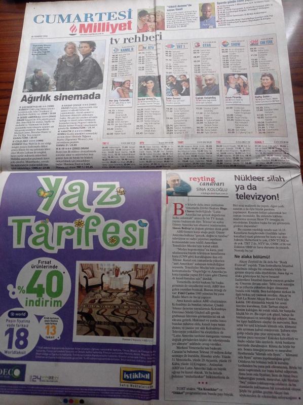 Sayfa Boyutu: 38*56cm Sayfa Sayısı:14 Milliyet Cumartesi Gazetesi Yıpranma, sararmalar, kupon kesiği ve yırtılmalar zamana bağlı olarak görülebilir