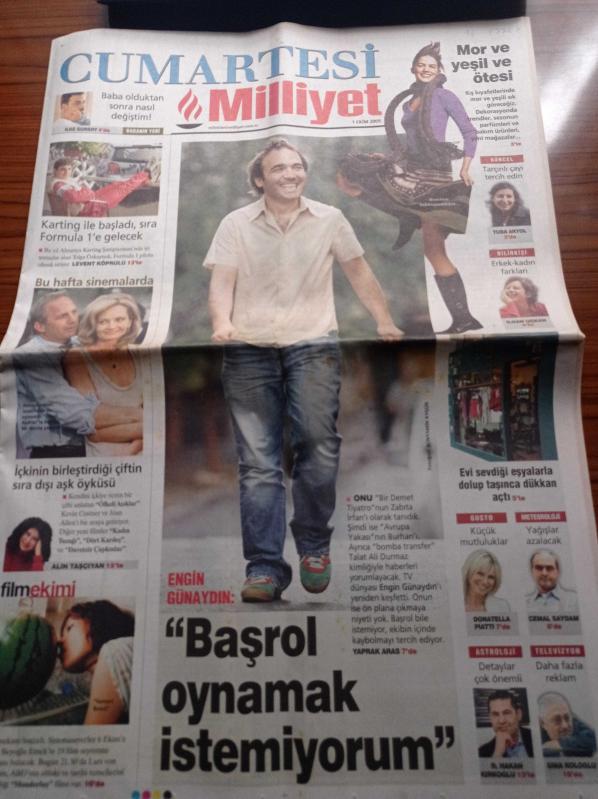 Milliyet Cumartesi Gazetesi - 1 Ekim 2005 - Bir Demet Tiyatro'nun Zabıta İrfan'ı Engin Günaydın Fotoğrafı - Bu Hafta Sinemalarda - Kevin Costner - Tolga Özkaynak Karting İle Başladı Sıra Formula 1'e Gelecek - Filmekimi - Beyoğlu Emek Sinemasında 19 Film Seyretme İmkanı - Mor Ve Yeşil Ve Ötesi - Öfkeli Aşıklar Filmi adlı eser Türkçe dilindedir.