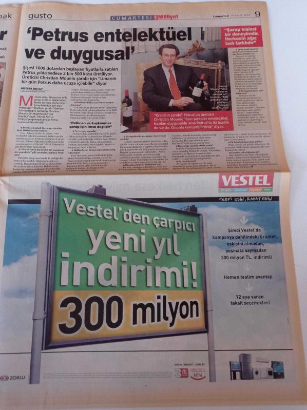 Milliyet Cumartesi Gazetesi - 14 Aralık 2002 - Elvis Presley'in Türk Hayranlarından Elvis'e Doğum Günü Partisi- Yavuz Bingöl - Şarapların Kralı Petrus'un Üreticisi Christian Moueix adlı eser Türkçe dilindedir.