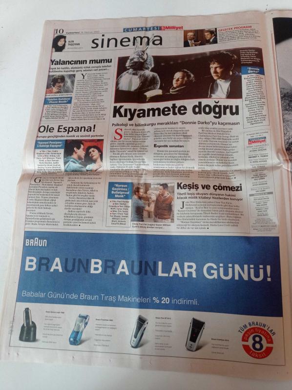 Milliyet Cumartesi Gazetesi - 14 Haziran 2003 - Savaş Dinçel - Sinemis Candemir - Akademik Kurum PALA- Necmettin Erbakan - Orhan Pamuk'la İlgili İki Bildiri -Göksel Fotoğrafı - ÖSS'ye Bir Gün Kaldı - Beşiktaş'ın Basın Sözcüsü Doktor Mete Dürer - Babalar Günü - Donnie Darko Haftanın En İyi Filmi adlı eser Türkçe dilindedir.