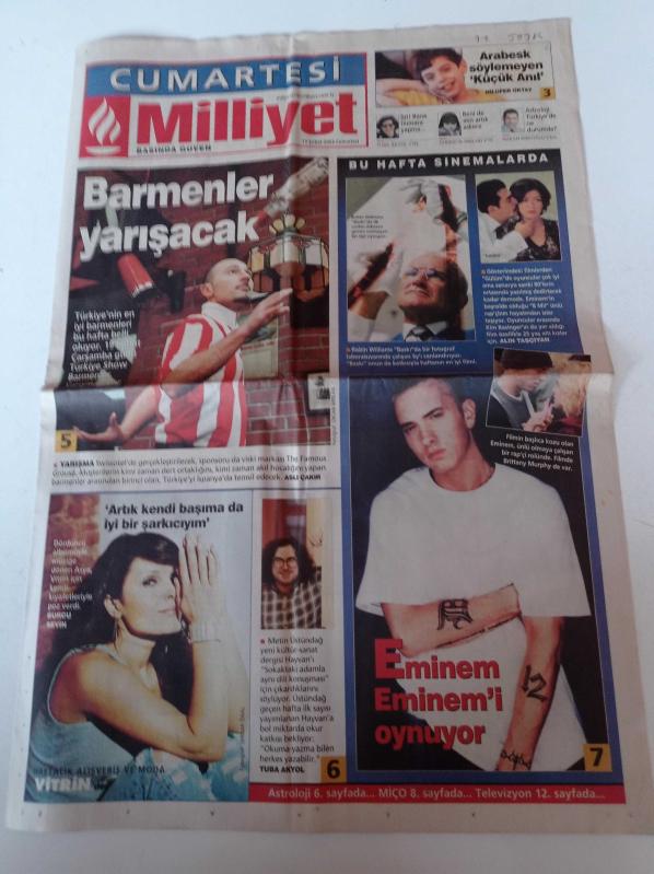 Milliyet Cumartesi Gazetesi - 15 Şubat 2003 - Anadolu'nun İlk Kadın Saat Ustası Şükran Lişesivdin - Oğuz Çetin - Borusan'dan İki Ayrı Etkinlik- Fransız Kültür Merkezi -Eminem Eminem'i Oynuyor - Metin Üstündağ - Barmenler Yarışacak - Arabesk Söylemeyen Küçük Anıl adlı eser Türkçe dilindedir.