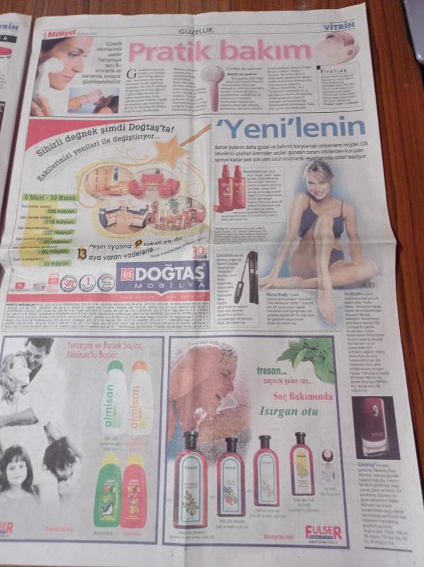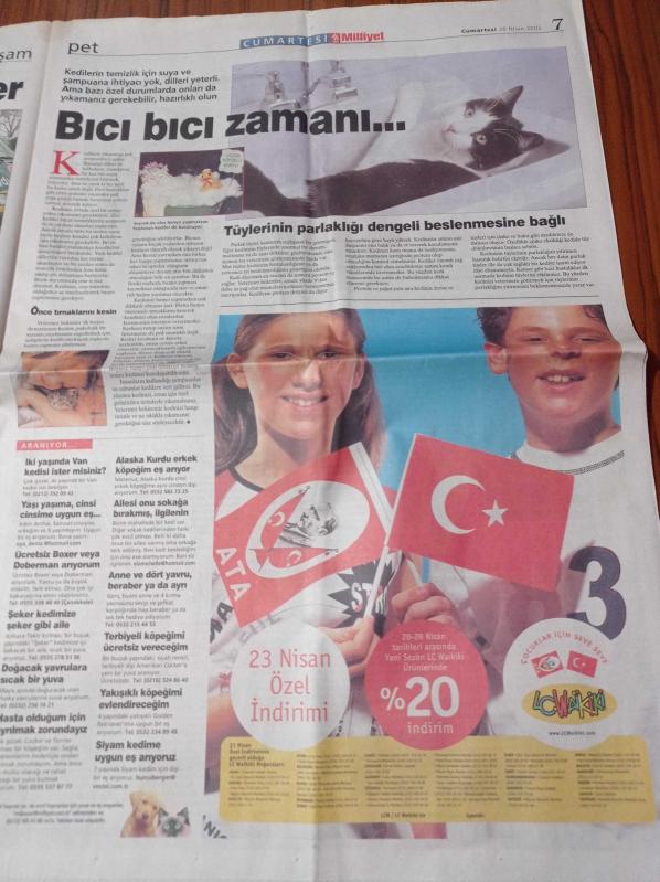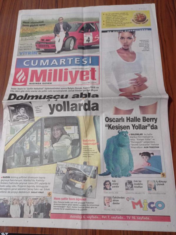 Milliyet Cumartesi Gazetesi - 20 Nisan 2002 - Eski Bir Modelin İtirafları - Öykülerden Alınan Dersler - Hamam Filmi Mehmet Günsur'un Hayatını Değiştirdi - Habbecik Konseri - Atilla İlhan'ı Dinliyoruz -Oscarlı Halle Berry Kesişen Yollar'da - Türk Ralli Tarihinin İlk Avrupa Şampiyonu Nejat Avcı - Aşk Anarşi Yaratır - Şoför Nebahat adlı eser Türkçe dilindedir.