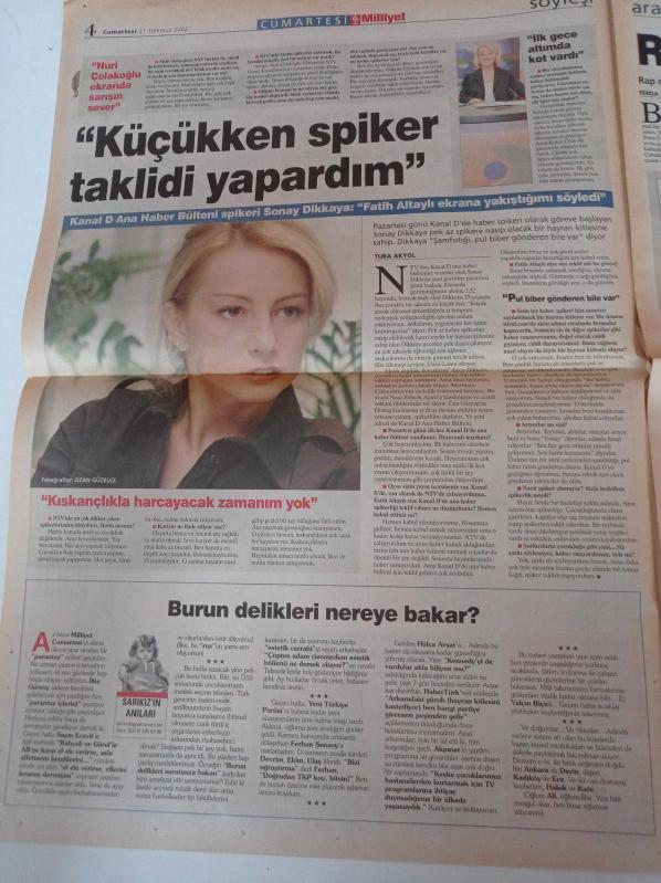 Milliyet Cumartesi Gazetesi - 27 Temmuz 2002 - Haber Spikeri Sonay Dikkaya Fotoğrafı - Siyah Giyen Adamlar Filmi - Will Smith - Dilek Hanif'in Son Defilesi - Ragga Oktay - Rap - Abdülaziz'in Vagonunu Kurtaran Koleksiyoner Mete Tekyıldız adlı eser, Kitap > Süreli Yayınlar > Gazeteler kategorisinde İkinci El olarak satıştadır.