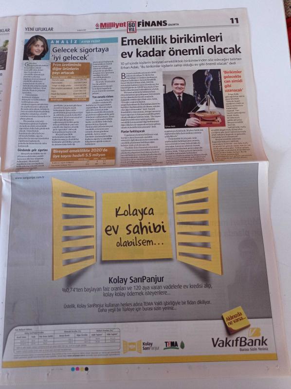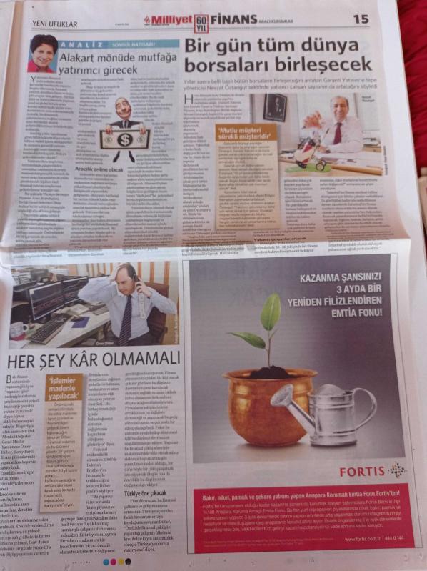 Milliyet Finans Gazetesi - 31 Mayıs 2010 - Garanti Bankası Yönetim Kurulu Başkanı Ferit Şahenk - Paranın Ucundaki Hilal - Ressam Elif Urss- İş Bankası Genel Müdürü Ersin Özince - Piraye Antika adlı eser Türkçe dilindedir.