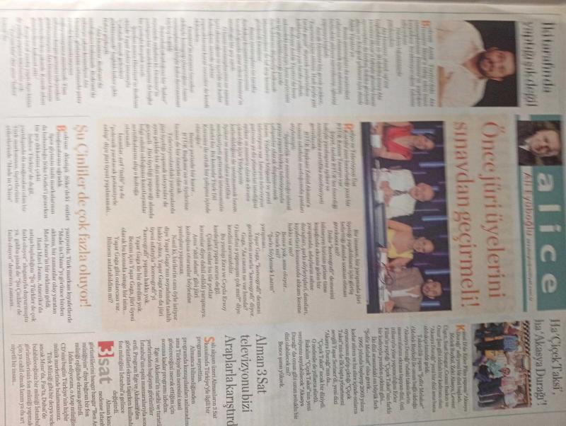 Milliyet GAZETESİ -25 temmuz 2008-Özgür Ozan-Birsen Altuntaş-Mert Erdoğan-Mustafa Kemal Pehlivan-Yeliz Aras-Ayşegül Ataç-Özlem Şentürk-Ekin Deniz Aydın-Derya Aslan-Eda Yolaçan-Türkan Yücesoy-Atilla Cön-Tuğba Varan-Sinem Eince-Melis Kardeş-Elif İnce-Mehmet Samet Gültekin-Mehtem Çetin-Duygu Gök-Cenk Gürpınar-Kıvanç Talu-Zehra Kılınç-Mehtap Ergen-Ali Kaymakçıoğlu-Duygu Gök-Erdal Dolay-Cenk Gürpınar Alişan’la oynayacaktı ama izin alamadı-Makyajla bambaşka biri oldu-Kobal annesiyle reklamda oynadı-Kimlik tazelemiş, yaptığı iş deği değil-Önce jüri üyelerini sınavdan geçirmeli-Çocukların sevdiği bir iş mutlaka tutuyor-Big Man radyocu olursa-Parayla pulla pek işim yok-Bankacılığa dayanamadım-Şu cümleler de çok fazla oluyor-Haftanın Söyleşisi-Söz Okuru-Yazlık diziler olmadı-Daha çok beklersiniz-Aşk her şey değil-Hatırla Sevgili hakkında-Kanalı geri istiyorum-Hep ağlıyorlar-Tılmaç’ın dövmesi-Kitaptan ayrılmasınlar-“Akasya Durağı” harika-Tekrarı yayından kalktı-DVD’si çıkarılsın-Geniş bilgi istiy adlı eser Türkçe dilindedir.