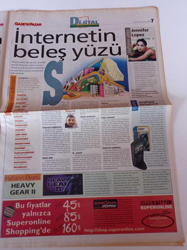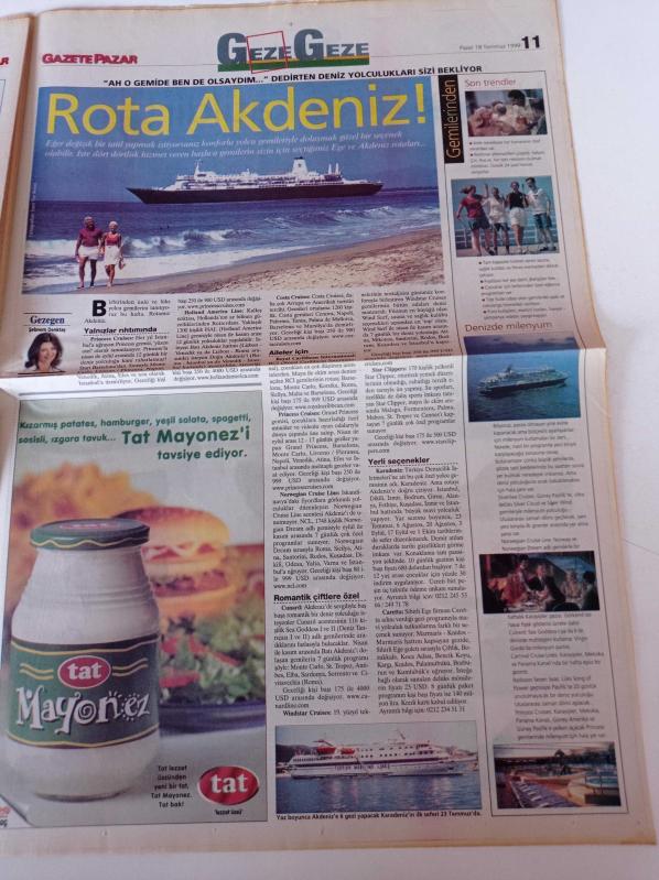 Milliyet Gazete Pazar - 18 Temmuz 1999 - Sayı 128 - Didem Uzel Fotoğrafı - Topuklu Futbol - Genç Avrupa Bize Bakıyor - Denizde By Night adlı eser Türkçe dilindedir.