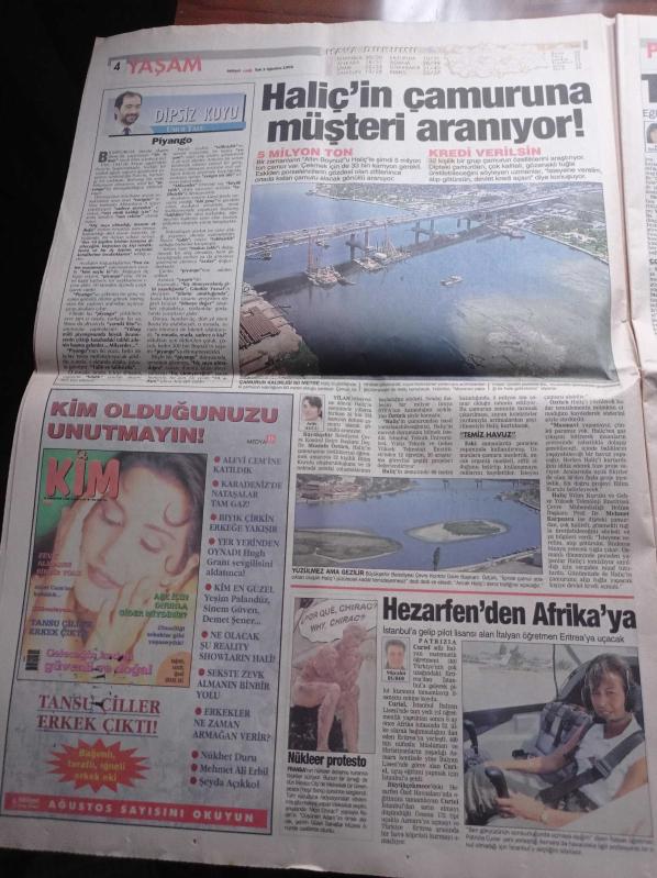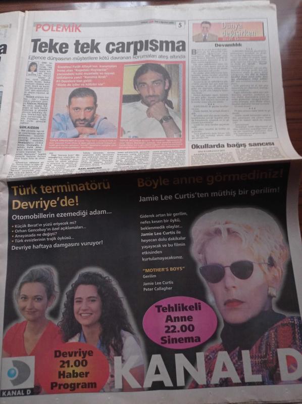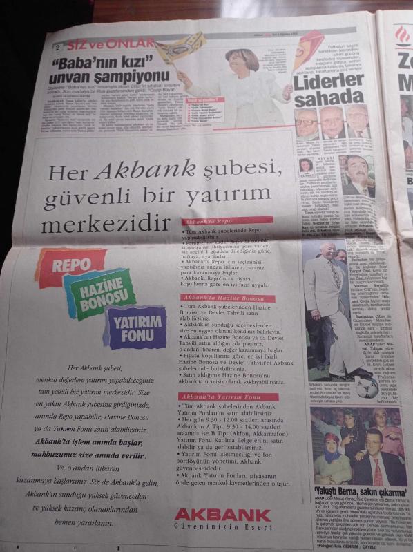 Milliyet Gazetesi - 1 Ağustos 1995 - Bursaspor'un Bileği Bükülmüyor - Gülay Atığ'ın Sporcu Ordusu - Bayanlar Futbolda Dinarsu Fırtınası - Kuzey Irak Barut Fıçısı - MHP Başkanını Alparslan Türkeş Siyasette 30. Yılını Kutluyor - Fatih Altaylı İle Ali Desidero'nun Koruma Polemiği - Nükhet Duru'dan İkinci Evet - Liderler Sahalarda - Tansu Çiller - Süleyman Demirel adlı eser Türkçe dilindedir.