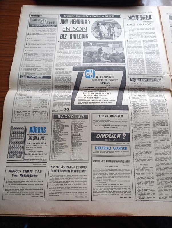 Milliyet Gazetesi - 10 Ekim 1970 - İsmet İnönü Ortadoğu Olaylarına Karışmayalım - Başbakan Süleyman Demirel Bulgaristan'dan Döndü İşbirliği İçin Anlaşma Oldu - Veliler Levent Lisesi'ni Bastı - CHP Genel Sekreteri Bülent Ecevit Kemal Satır'a Cevap Vermiyor - Milliyet 1970 Türkiye Güzelini Seçiyor Adaylar Fatma Belgen - Burhan Felek Köşe - Kuzey Vietnam Nixon'un Teklifini Reddetti - Hoş Memo Karikatür Çizen Al Capp - Johnny Hazard Çizen Frank Robbins - Sahne Aşkları Çizen Leonard Starr - Allahlık Ali Bey Çizen Swan - Boncuk Karikatür Walt Disney - Karaoğlan Yazan Ve Çizen Suat Yalaz - Tehlikeli Çocuk Çeviren Nihal Akkaya Yazı Dizisi - Şeytanistan Yazan Ali Yüce Yazı Dizisi - Nasır Kalan Arap Alemi Yazan Metin Toker Yazı Dizisi - Kaygısızlar Jimi Hendrix'i En Son Biz Dinledik Dedi - Zirvede 30 Melodi En Çok Satan Plaklar-- Almanların A ve Ümit Kadroları Açıklandı H.Schön Netzer'i Takıma Almadı - Milli Takım Antrenörü Sabri Kiraz Oyuncuları Uyardı Aman Bu Hafta Sakatlanmayın adlı eser, Kitap > Süreli Yayınlar > Gazeteler > Türkiye > Genel > Günlük kategorisinde İkinci El olarak satıştadır.