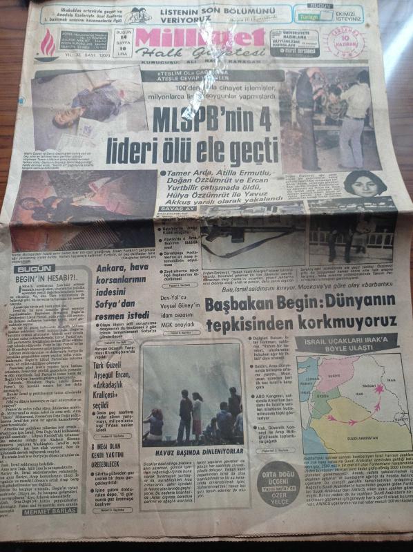 Milliyet Gazetesi - 10 Haziran 1981 - MLSPB'nin 4 Lideri Ölü Ele Geçti - Marksist Leninist Silahlı Propaganda Birliği - Mahir Çayan Ve Deniz Gezmiş'ten Sonra En Tehlikeli Şehir Gerillası Tamer Arda - Bebek Yüzlü Anarşist Doğan Özzümrüt - Hülya Özzümrüt - Mlspb'nin Bazı Eylemleri - Dev Yol'cu Veysel Güney'in İdam Cezası Onaylandı - Batı İsrail Saldırısını Kınıyor adlı eser Türkçe dilindedir.