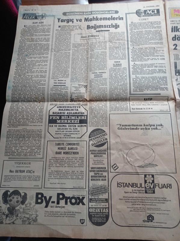 Sayfa Boyutu: 38*56cm Sayfa Sayısı: 12 Milliyet Gazetesi Yıpranma, sararmalar, kupon kesiği ve yırtılmalar zamana bağlı olarak görülebilir Not: Gazetenin Eksik Sayfaları Vardır Bilginize
