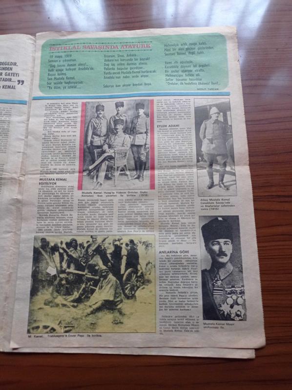 Milliyet Gazetesi - 10 Kasım Özel Eki - 1980'ler - Gazi Mustafa Kemal Atatürk Fotoğrafı - İstiklal Savaşı'nda Atatürk - Mustafa Kemal Halep'te Yıldırım Orduları Grubu Komutanı İken Yaverleri İle Birlikte - Atatürk Kendini Anlatıyor - Atatürk'ün Gençliğe Hitabesi - Ulusal Kurtuluş Yılları Sırasında Mustafa Kemal Cepheyi Denetlerken - Cumhurbaşkanı Ve Devrimci Atatürk - Mustafa Kemal Nasıl Bir Kişi İdi - Yakup Kadri Karaosmanoğlu - Ahmet Haşim - Falih Rıfkı Atay - Kılıç Ali - Afet İnan - Yabancı Gözü İle Atatürk adlı eser Türkçe dilindedir.